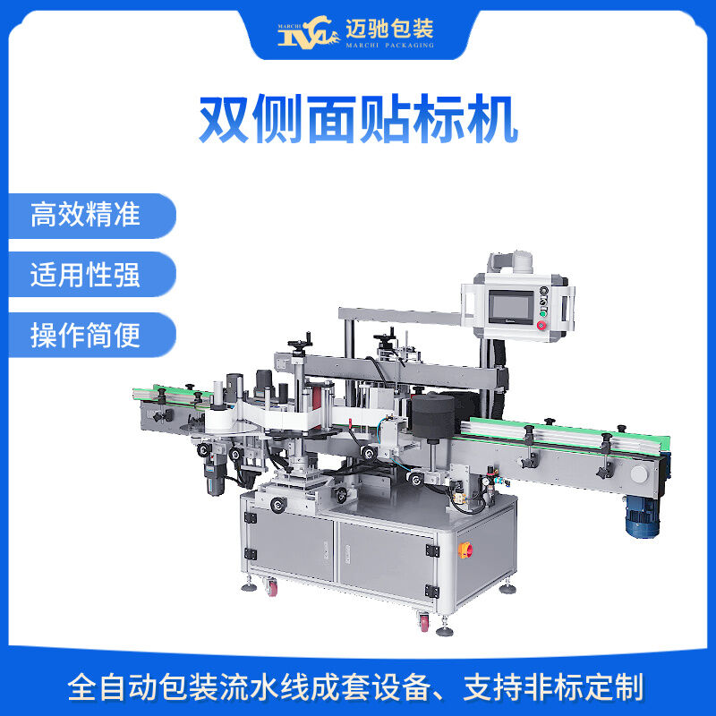1、 適用于圓瓶、方瓶、橢圓瓶、錐度瓶等物體的單側(cè)或雙側(cè)面自動貼標
