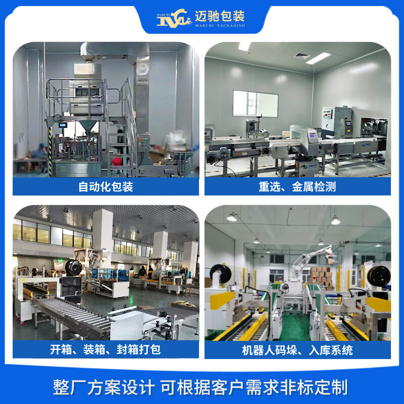1.包裝流程:上袋-打碼-開拉鏈-開袋-計(jì)量下料-清理-熱封-整形