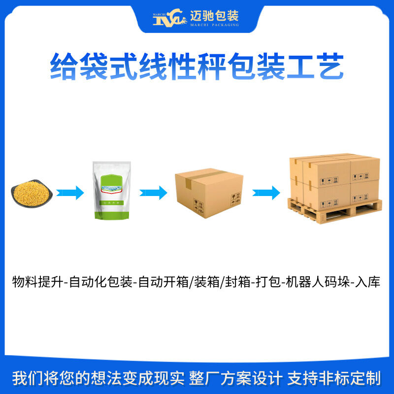 邁馳,是一家專業生產全自動給袋式線性秤顆粒包裝流水線的生產廠家,無揚塵、高精度,可根據物料不同特性定制包裝流水線設備,一對一定制化服務,26年包裝行業經驗助力生產企業將本增效,提高產能。
