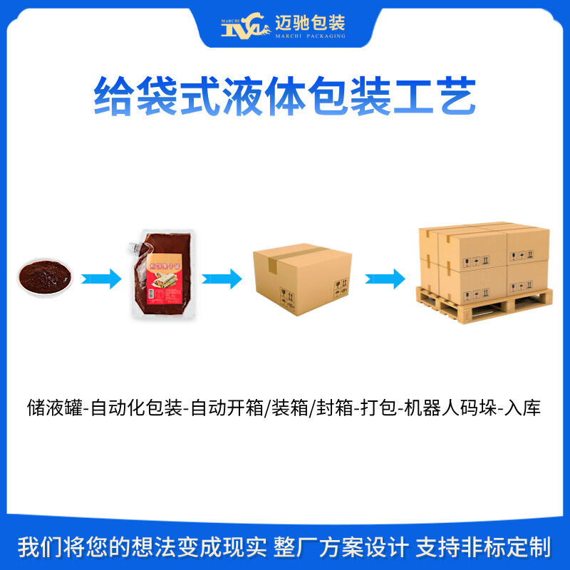 邁馳,是一家專業生產全自動給袋式液體包裝流水線的生產廠家,無滴漏、高精度,可根據物料不同特性定制包裝流水線設備,一對一定制化服務,26年包裝行業經驗助力生產企業將本增效,提高產能。